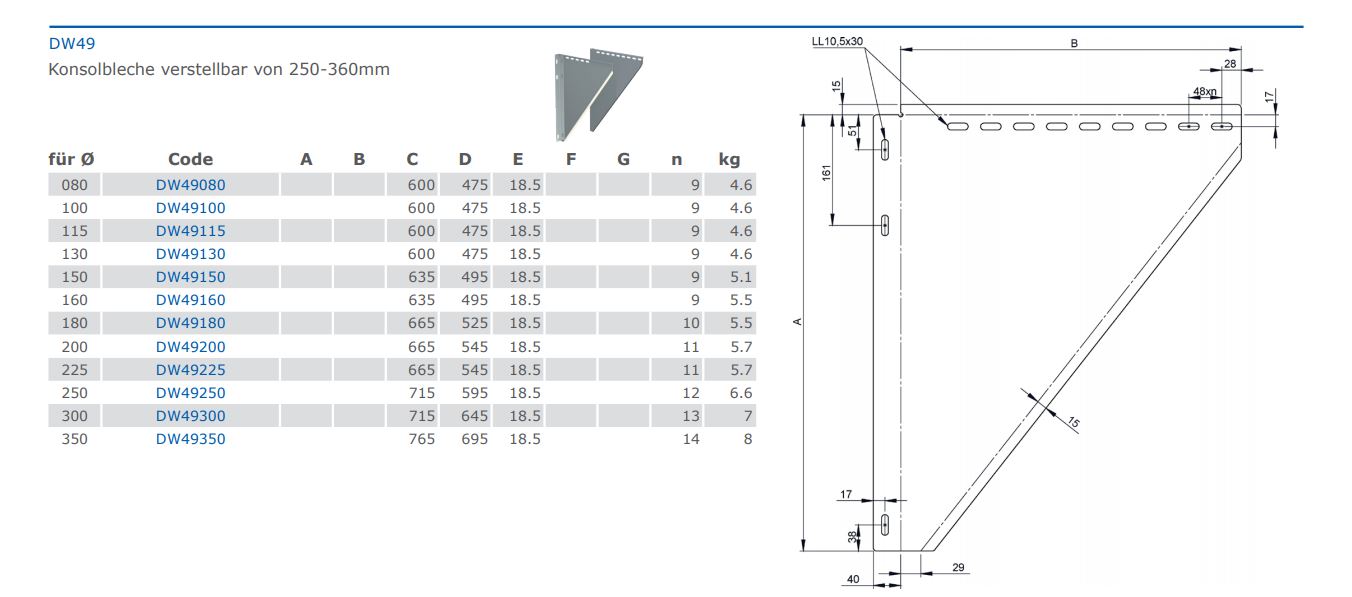 Jeremias DW-FU Konsolenbleche verstellbar 50-360mm