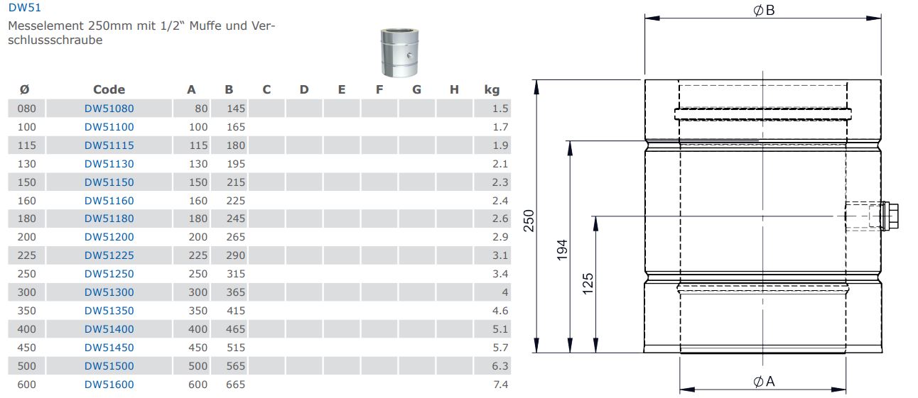 Jeremias DW-FU Messelement 250 mm mit 1/2 zoll Muffe und Verschlussschraube