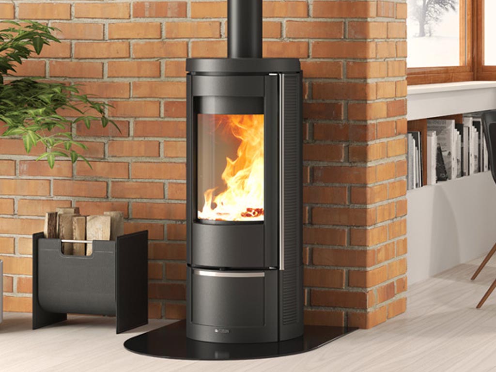 Dieser Kaminofen bietet durch seine gebogene Sichtscheibe einen wunderschönen Blick auf das Flammenspiel.