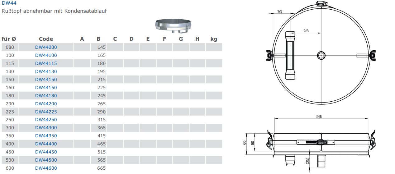 Tecnovis DW-Classic Rußtopf abnehmbar mit Kondensatablauf